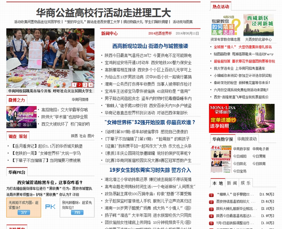 6月11日,陕西省大型新闻网站《华商网》在头条位置以《“爱的毕业礼”——华商公益高校行活动走进理工大》为题,报道了我校开展的“爱的毕业礼”公益募捐活动。