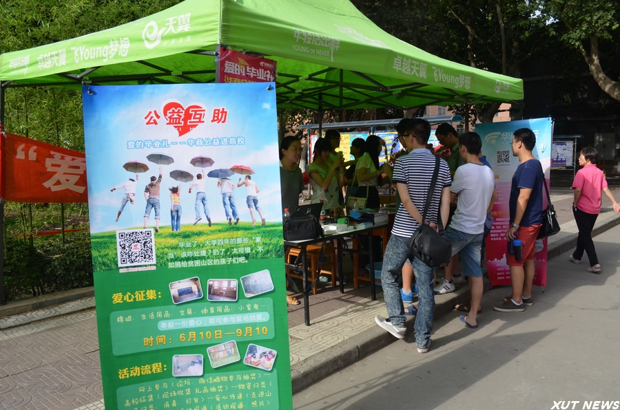 据了解,毕业季来临,许多大四学生有很多东西都带不走,丢掉既浪费了资源也容易污染环境。为此,由我校团委与华商网联合开展的“爱的毕业礼”公益募捐活动旨在以公益为出口,携手爱心企业走进我校,将大四毕业生的旧衣物收集利用,并转赠给山区贫困的学校,打造爱心企业联盟,通过华商网公益平台扶持相关贫困学校。活动中,我校志愿者们通过发放活动宣传单,向过往同学详细介绍此次募捐活动的内容和意义。广大同学踊跃参与活动,分别捐出棉被、文学类书籍、体育用品、小家电、小书桌等许多有用的日常用品。