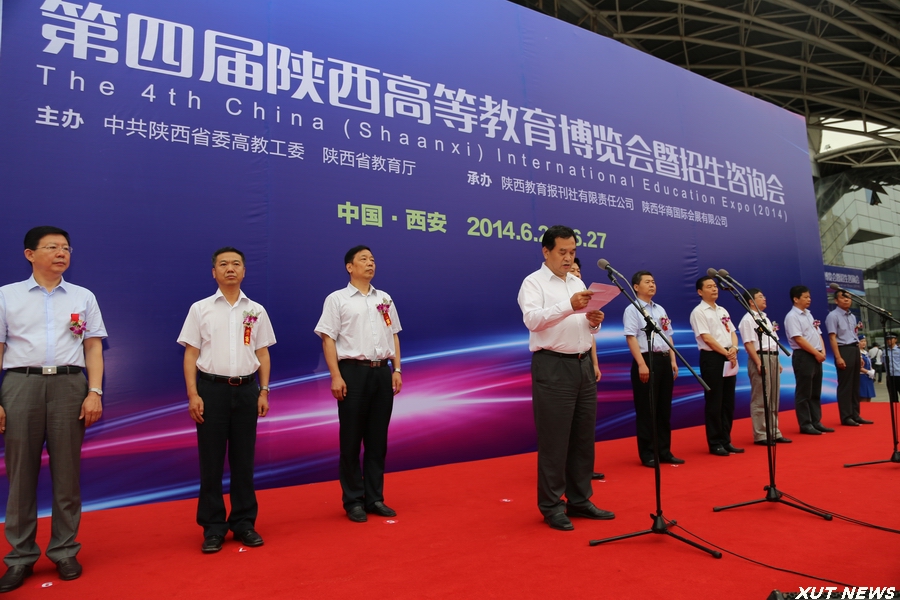 6月25日上午,第四届陕西高等教育博览会暨招生咨询会在西安曲江国际会展中心开幕。陕西省副省长庄长兴宣布开幕,省委高教工委书记李仲为致辞。开幕式由陕西省教育厅厅长李兴旺主持。我校党委书记周孝德,副校长刘军率队参加了开幕式。