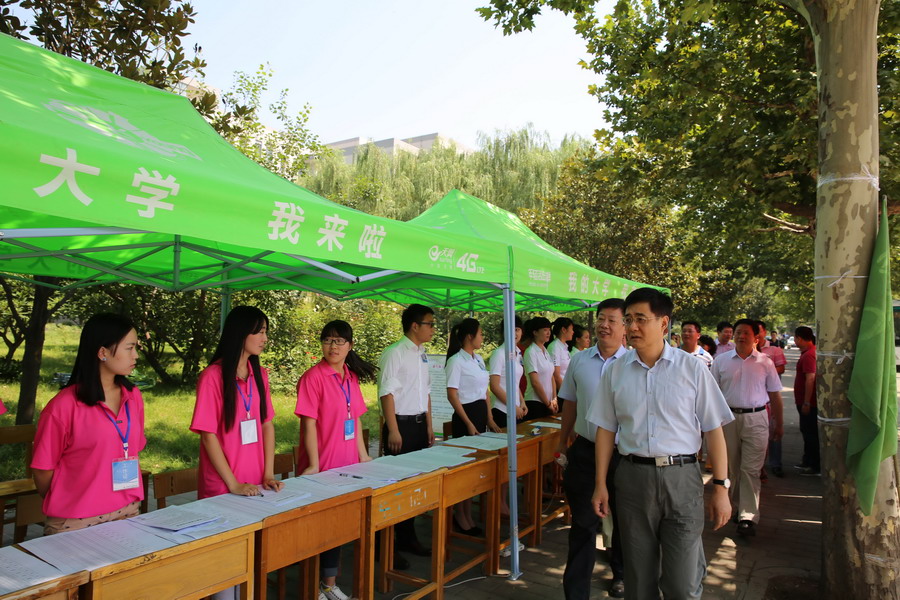 校领导先后对各学院新生接待处、缴费处、户籍办理处、军训服发放处、学生公寓等地的硬件设施、现场布置情况进行了细致检查,详细询问了迎新工作的准备情况,查看了各项工作的是否落实到位。