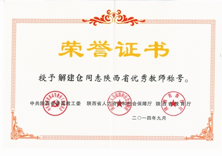 解建仓、武吉梅、刘航等三位同志被授予“陕西省优秀教师”称号;李秉祥同志被授予“陕西省优秀教育工作者”称号;自动化与信息工程学院信息与控制工程系被授予“2014年陕西教育系统先进集体”称号。