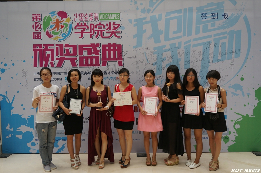 由国家工商总局批准、中国广告协会主办的“第十二届中国大学生广告艺术节学院奖大赛”颁奖盛典于前日在北京梅地亚中心盛大举行。西安理工大学师生获得金奖2名、银奖1名、铜奖1名、优秀奖9名、入围奖31名,共计44个奖项的优异成绩。