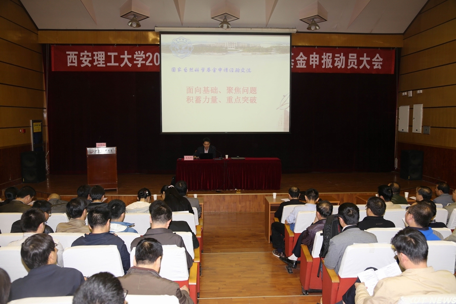 10月27日下午,我校2015年度国家自然科学基金申报动员会在图书馆报告厅召开,罗兴锜副校长出席会议并讲话。大会由科技处郭鹏程副处长主持。各学院院长、主管科研副院长、科研秘书、副高职及以上教师、青年教师和其他科研人员共计300余人参加了会议。