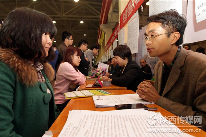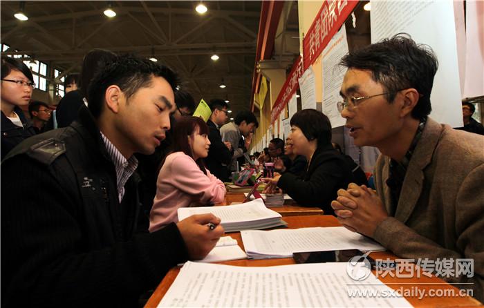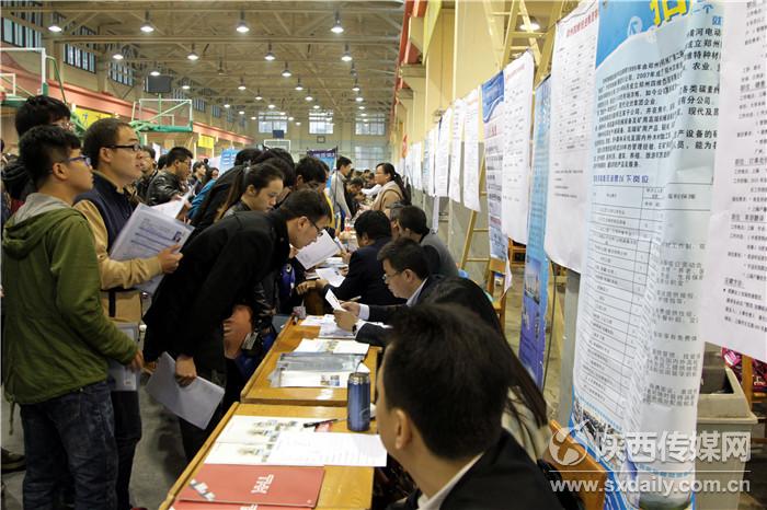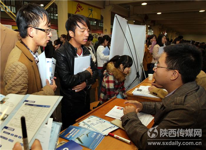 10月31日,西安理工大学2015届毕业生秋季就业供需洽谈会在校体育馆举行,300余家企业参加,涉及市场营销、水电、土木、电器自动化等多个行业,西安理工大学及周边高校近2万名毕业生参加了此次招聘会。记者 肖晓良摄