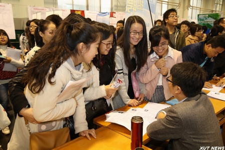 10月31日,我校2015届毕业生秋季就业供需洽谈会在金花校区体育馆举行。306家企事业单位参加了洽谈会,涉及机械制造、自动化、材料、土木工程、水利水电、印刷、计算机、金融、法律等多个专业,提供就业岗位5100余个。