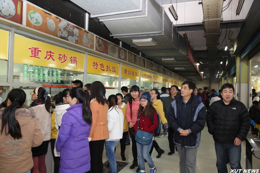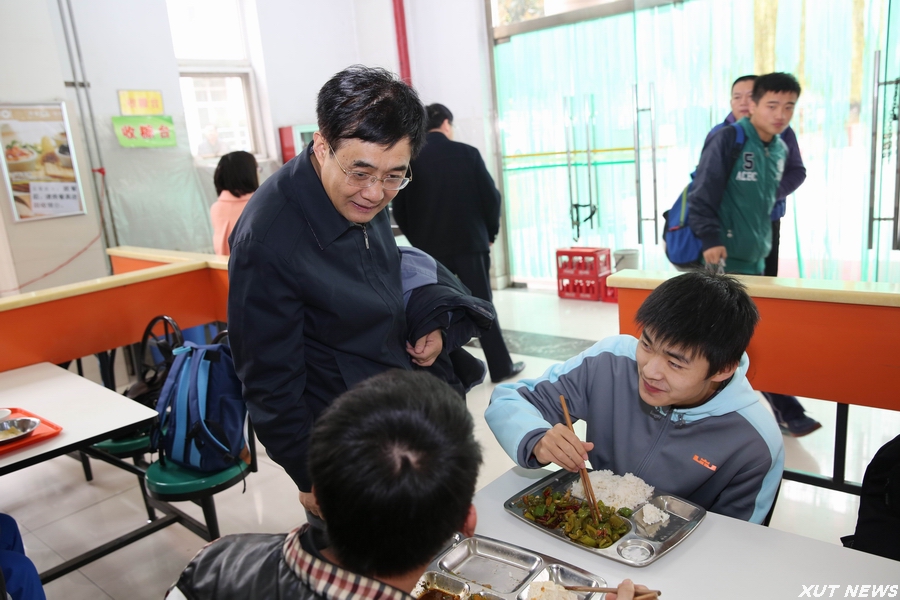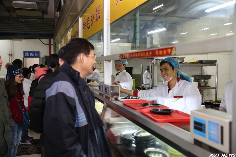 11月26日上午,刘丁校长在曲江校区为本科生上完课后到学生餐厅检查工作。