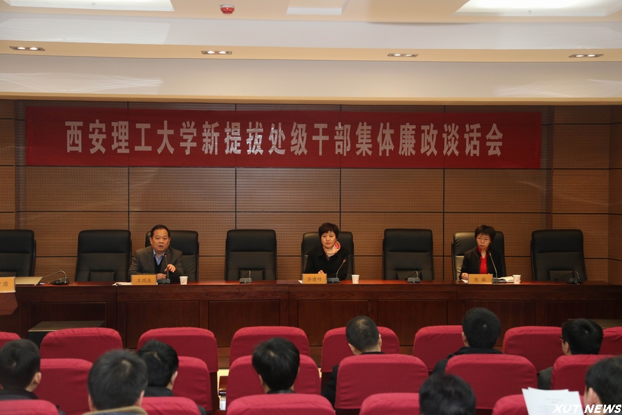 会上,新任处级干部观看了廉政教育短片《坚持以“零容忍”态度惩治腐败》,签订了《西安理工大学处级领导干部廉政承诺书》。基建处处长罗建华、后勤党委书记邢凯、印刷包装工程学院院长曹从军、资产处副处长袁建代表新任处级干部作了发言,他们纷纷表示:在新的工作岗位,将牢记职责使命,勤奋工作,严于律己,做清正廉洁的表率,不辜负群众和组织的期望。