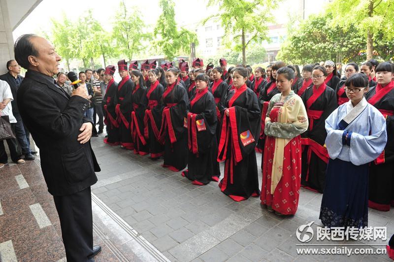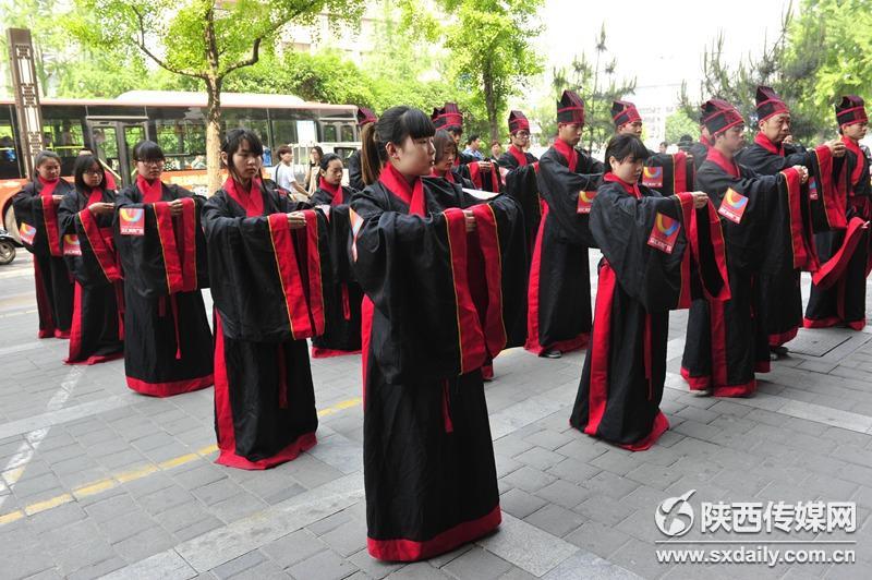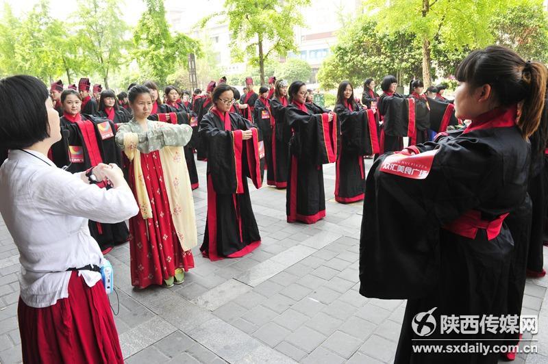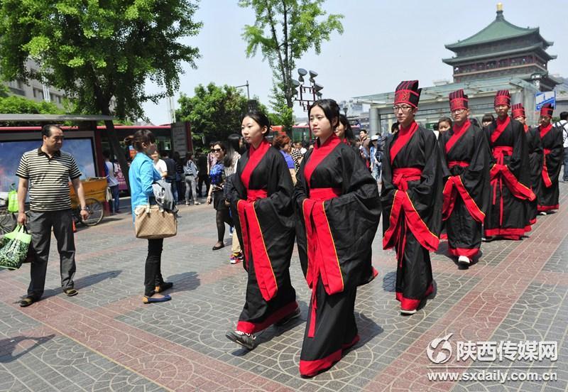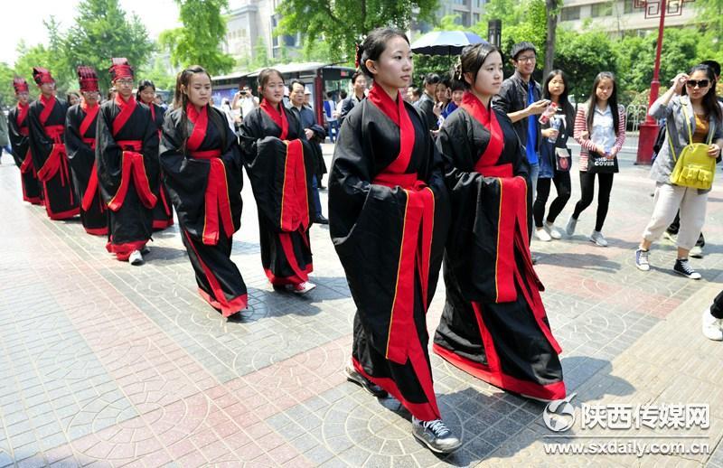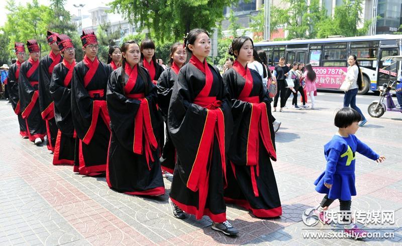 活动现场,身穿汉服的学子们吸引了过往行人的目光,他们纷纷试穿汉服合影留念,并向现场的国学老师了解汉代传统礼仪,孩子们也被这些传统服饰吸引,跟着展示队伍一起学习古人行走的姿态。记者 李向红 袁景智 王瑛摄