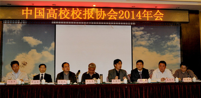 汤继强作中国高校校报协会2014年度工作报告。他通报了2013年度好新闻评选情况。他说,近年来湖北的消息,北京、江苏的通讯,广东的版面获一等奖居多,同仁可关注学习;存在的突出问题是内容撞车,他提醒大家撰写稿件要站在全国平台,角度要新。汤继强说,协会主管为教育部,希望校报报人认真学习中共中央办公厅、国务院办公厅印发的 《关于进一步加强和改进新形势下高校宣传思想工作的意见》,他强调,高校作为意识形态工作前沿阵地,肩负着学习研究宣传马克思主义,培育和弘扬社会主义核心价值观,为实现中华民族伟大复兴的中国梦提供人才保障和智力支持的重要任务。他提出校报应加强言论,强化电子版内容建设,适当微信、微博。