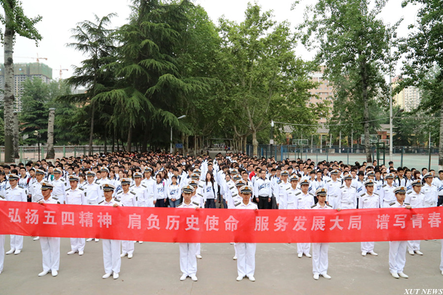 为纪念五四运动96周年,弘扬五四运动爱国主义精神,校团委组织我校2000余名青年学生分别在金花校区、曲江校区举行升旗仪式。