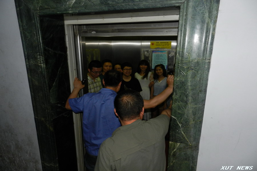 下午3点,电梯维保专家先与30余位学生代表交流了电梯的结构、内外标识、乘坐注意事项和发生电梯故障时的应对措施,并针对突发故障和乘客身体不适等状况进行了安全知识培训,接着应急演练活动开始。理工大厦中途电梯“突然停止”,轿厢内“同学被困”,“被困同学”立即按下电梯内的报警按钮与工作人员取得联系。工作人员边安慰“被困同学”边通知电梯维保单位并报告校园紧急救援指挥部,维保人员立即赶到事故现场,维护现场秩序并控制轿厢,经检查找到原因并成功救出“被困同学”。等候在外的校园紧急救援指挥部负责人对“被困同学”表示歉意并做好安抚工作。最后,维保人员对电梯进行全面检查后又重新投入运行。