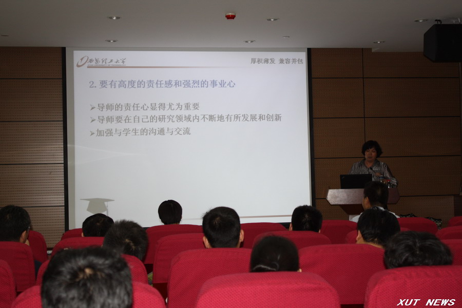 开幕式结束后,水利水电学院沈冰教授应邀做了《当好 “二传手”——几点感悟》的专题报告,介绍了研究生导师在培养工作中注意的问题及应担当的角色,以及如何处理好师生之间的关系。