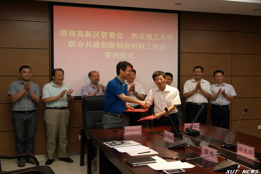 6月10日下午,我校与渭南高新区联合共建创新创业科研工作站签约仪式在学科2号楼会议室举行。渭南高新区党工委书记周庆文、西安理工大学副校长罗兴锜出席并讲话。签约仪式由我校科技处处长任海鹏主持。