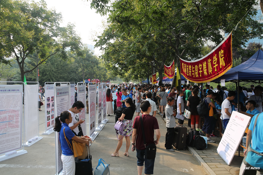 在迎新的两天里,秋风送爽,晴空万里,曲江校园内悬挂迎新横幅,彩旗飘扬,喷泉水柱冲天,喜气洋洋,生机勃勃,曲江校区新意盎然,张开宽广怀抱,迎接每一位西理工新的学子。