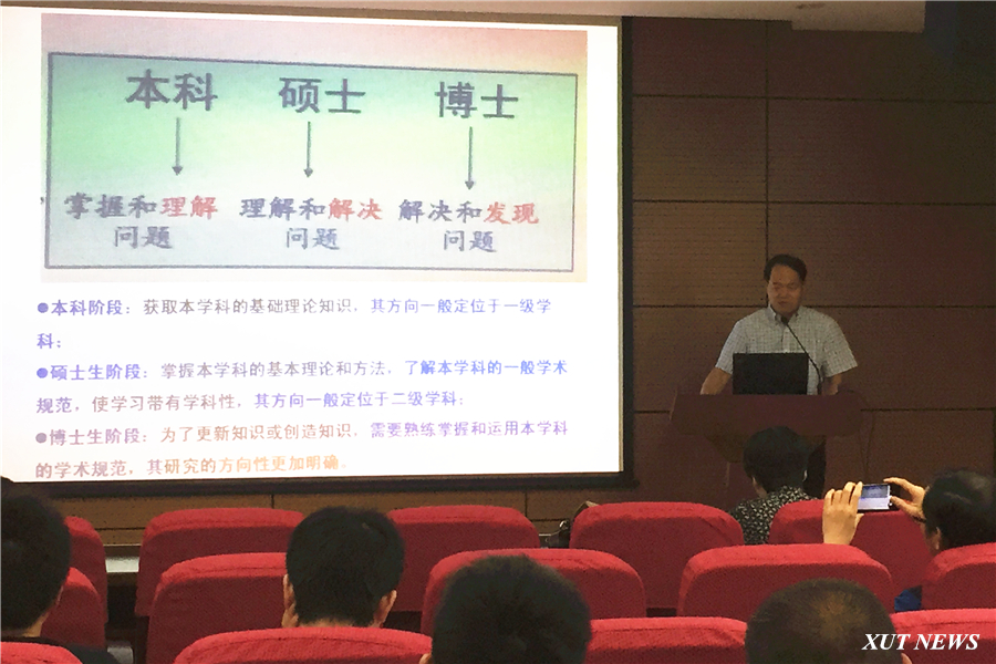 理学院施卫教授为大家做了《博士生学习的性质是学术创新》的专题报告。他从博士生学习的定位及特点、博士生学习的自主性、创造性、规范性以及博士生学习的标志性成果三个方面进行了系统深入的阐述。他指出博士生学习是一个艰苦的创造性劳动的过程,是融读书学习、研究思考、创新学术为一体的过程,是一个张扬学术自主性、彰显学术研究性的过程。他希望大家围绕即将进行的课题主动学习,探索性学习,用批判的观点去学习。通过获取知识培养自己的创新意识,通过解决问题锻炼自己的创新能力。