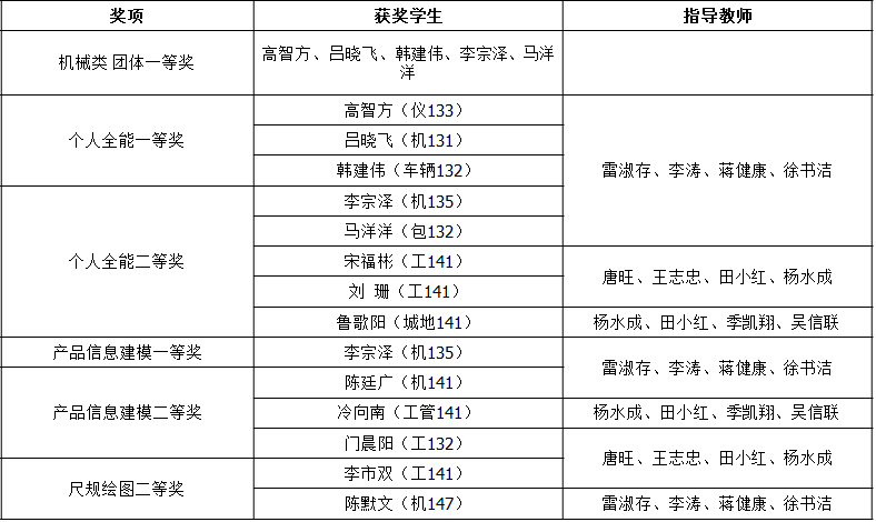 我校在第八届全国“高教杯”大学生先进成图技术与产品信息建模创新大赛上荣获机械类团体一等奖,并在个人全能、尺规绘图、产品信息建模等项目中获15项个人单项奖。
