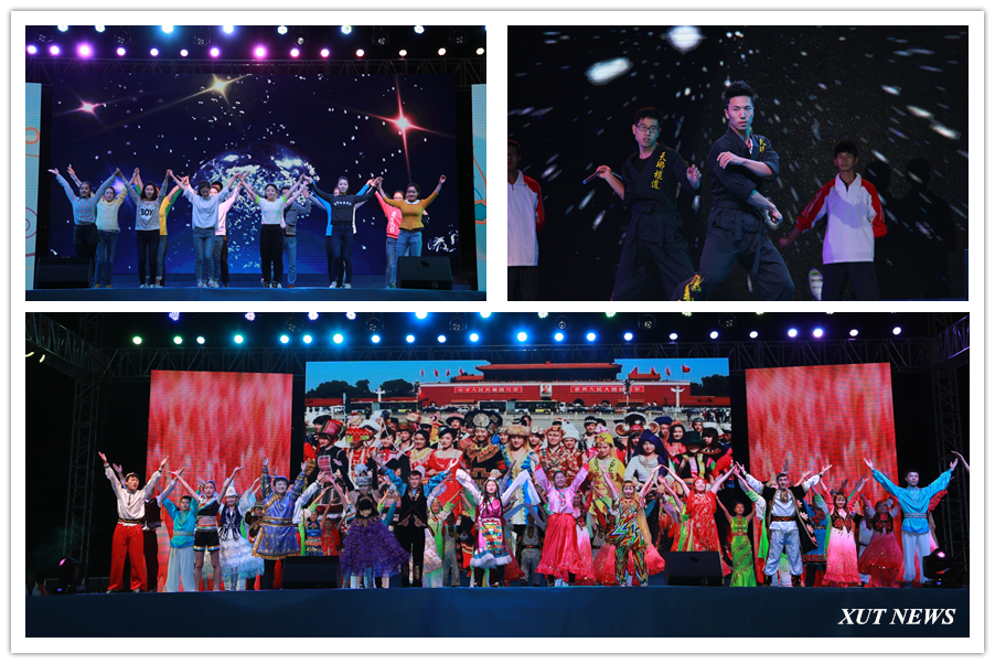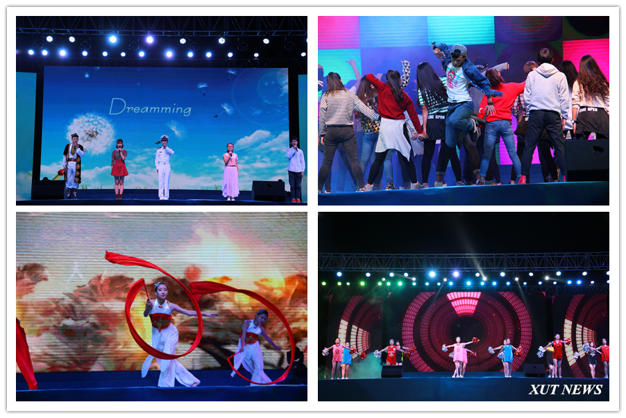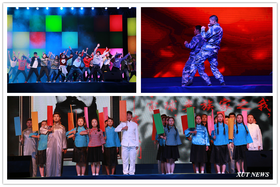 晚会在活力四射的开场舞《梦想点亮未来》中拉开了帷幕。朗诵《西理工,我来了》《梦想起点》,表现了我校学生满怀憧憬,以西理工为新的起点,努力实现人生梦想的豪言壮志;体育组合《多彩的校园》、舞蹈《盛世鸿姿》、音乐小品《指尖上的生活》、离退休教师《模特儿表演》,充分展示了我校校园文化生活的丰富多彩和师生员工积极向上的良好精神风貌。跟随着曼妙的舞步,西理工60余年的辉煌就像一幅幅画卷在观众面前徐徐展开。情景演说《我的大学》、音乐快板舞《为西理工点赞》充分展示了我校在教学、科研、人才培养、学生工作等方面取得的巨大成就;由少数民族同学表演的舞蹈《共同的家园》既彰显了各民族特色,也表达了各族学生心心相印、团结奋进的信心和决心;军体拳旗语表演《强军战歌》,表现了我校国防生献身国防的担当和责任;情景表演联唱《难忘的旋律》、情景演说《共和国的脊梁》、朗诵《写给未来的你》、歌舞《共和国走向未来》,表达了青年学生牢记先烈的革命精神和优良传统,坚定理想信念,迎着中国共产党指引的方向,为实现中华民族伟大复兴的中国梦奋发进取的远大志向。